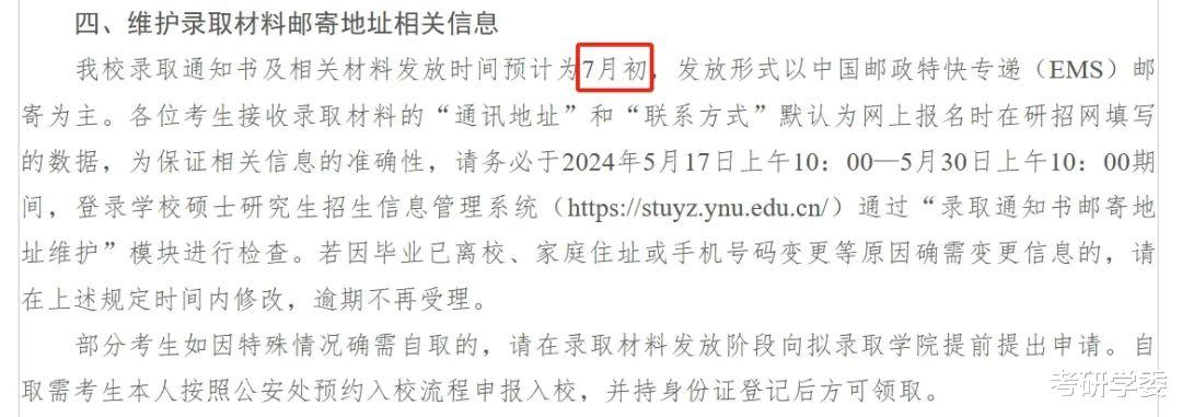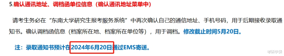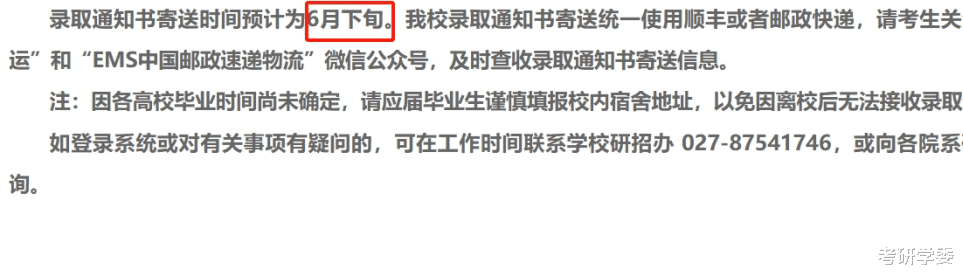 录取通知书预计在2024年6月20日通过EMS寄送。