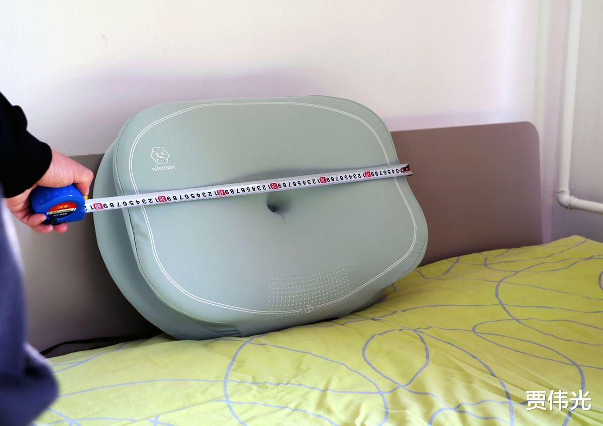 这样一款设计独特的枕头,尺寸可不小,长宽高分别是 580mm、450mm、100mm,净重大约1.3kg,拿在手里还是感觉沉甸甸的。