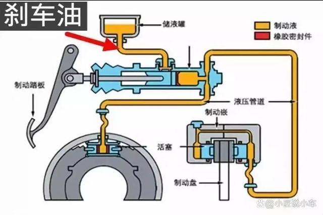 刹车油又名汽车制动液,是用于液压制动系统中传递压力以制止车轮转动的液体。使四个车轮上的分泵上的活塞在密封皮碗的作用下使活塞顶出,利用杠杆的原理作用在刹车盘以及刹车片上,从而起到刹车的目的。