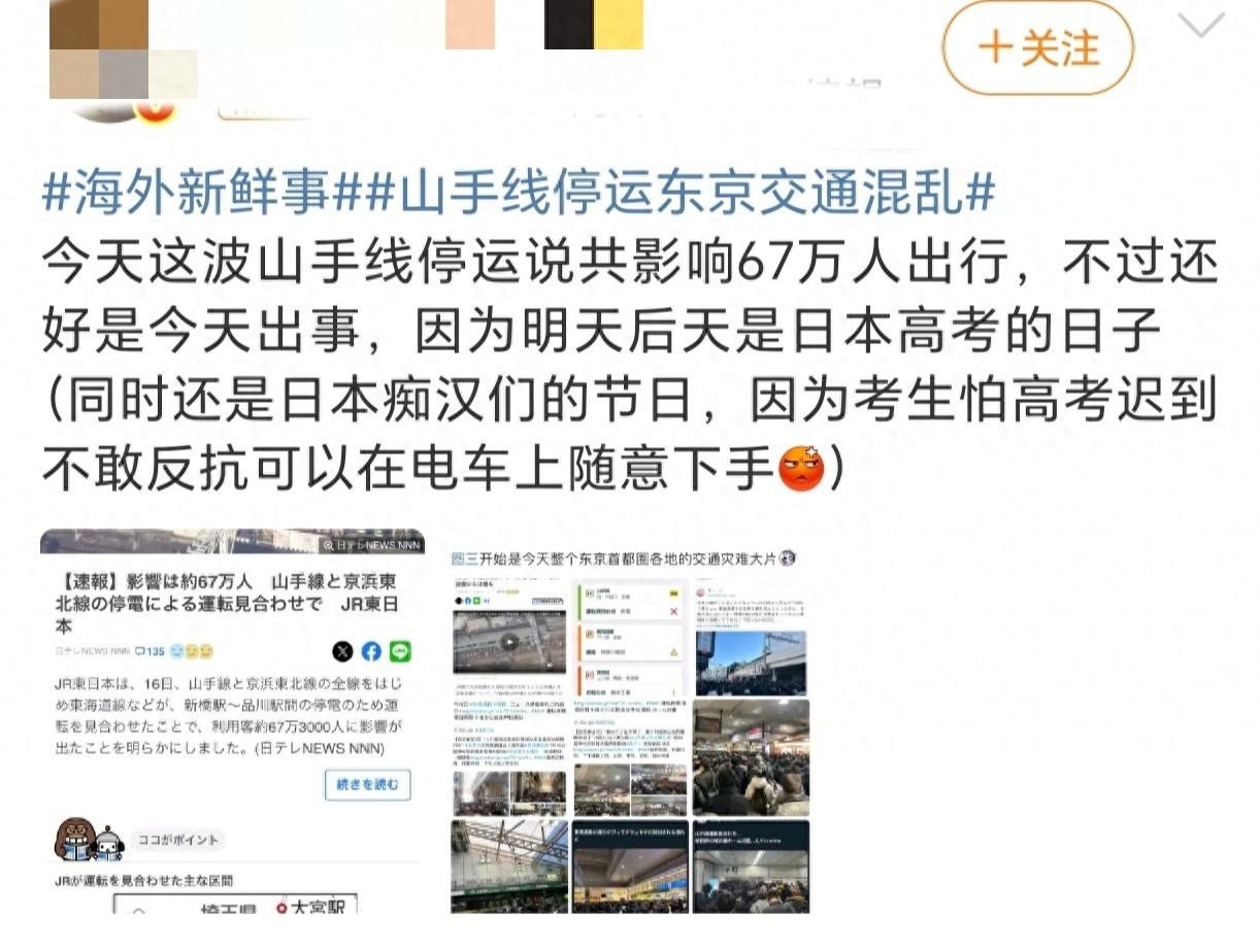 最近,在日本高考那两天,日本互联网上有一群人发布大量帖子,煽动对赶考的学生,在公共交通上进行性骚扰。