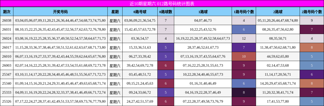 012路分析:0路与2路或成双热,1路保持稳定