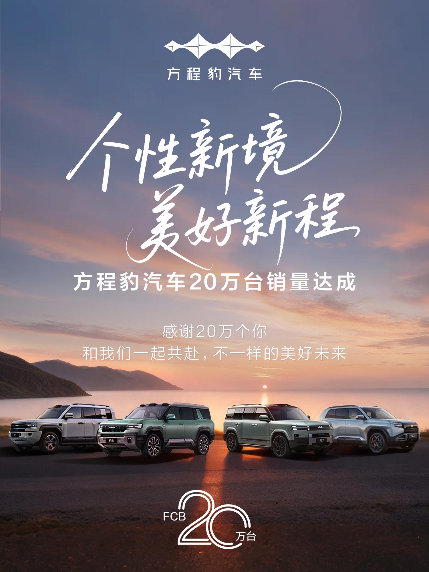 未来,随着产品矩阵的持续完善与品牌势能的不断提升,方程豹将从开创者转变跃升为领跑者的角色,在新能源赛道上全速驰骋,引领个性化、高品质出行新风潮。