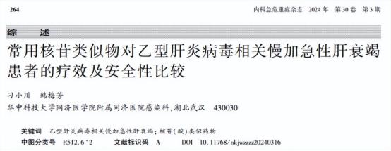 参考资料:[1]刁小川.常用核苷类似物对乙型肝炎病毒相关慢加急性肝衰竭患者的疗效及安全性比较,内科急危重症杂志,2024-06-15