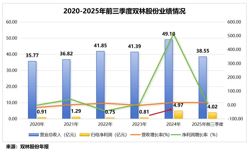 此后,公司投入大量资金与人力。2020-2025年前三季度,双林股份累计投入研发费用9.6亿元。