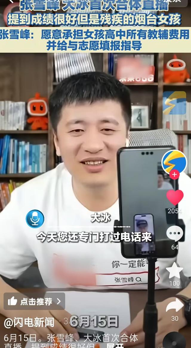 张雪峰向大冰直接“汇报工作”,据了解烟台这个残疾女孩儿,今年上高一,并不是高考生。
