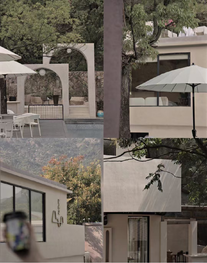 民宿一共5间客房,其中2间为套房,3间为单人房。同客房配套的有溪山食贴、半山花院、迷雾泳池、咖啡治愈所、喜木茶室。