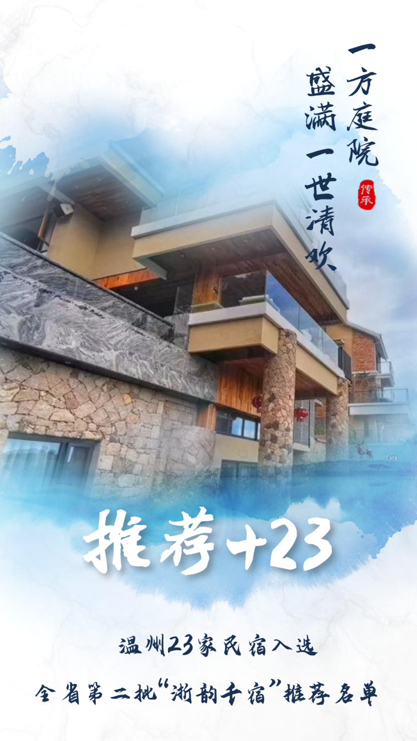 近日,浙江省民宿等级评定管理委员会公布了全省第二批“浙韵千宿”推荐名单,共210家民宿入选。其中,溪山行旅民宿、杺园民宿、隐于流世等23家温州民宿入选。在这浪漫的季节里,跟随温小旅,走进这几家入选的民宿,留宿韶光,踏春而行。享受推门的秀色与环抱的景致。
