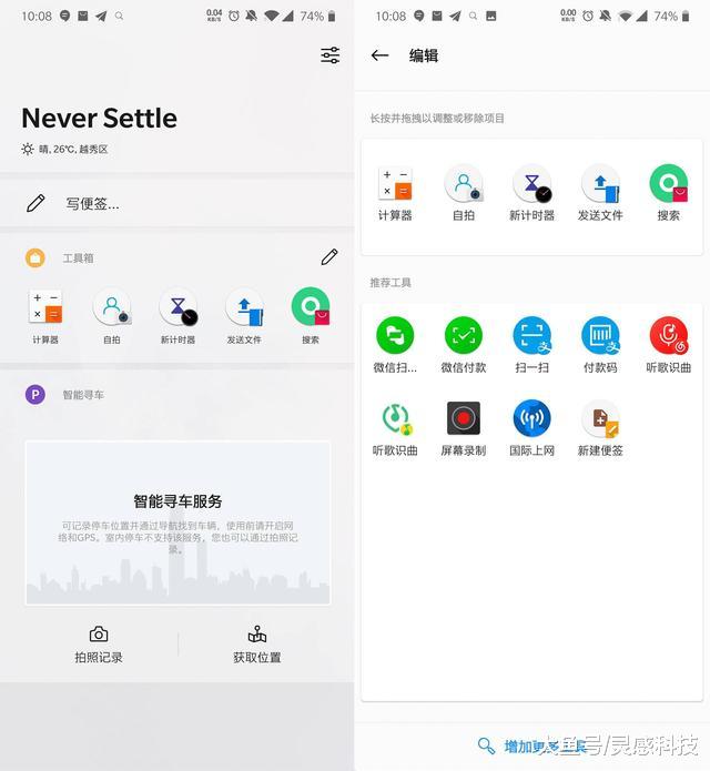 曾经由于追求更简洁的系统,一加的氢OS在本地化功能上有些缺失,这次一加氢OS新增了负一屏的信息流管理页面,在负一屏的这个界面,可以快捷使用一些工具软件,而且还有相当另类的智能寻车服务,加上卡包、智能信息管理等功能,可以说氢OS这次在本地化上已经开始逐步完善了。