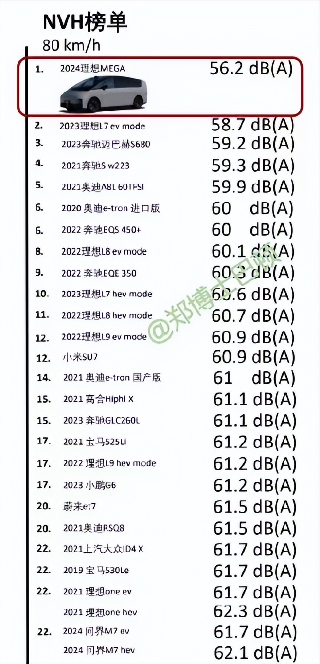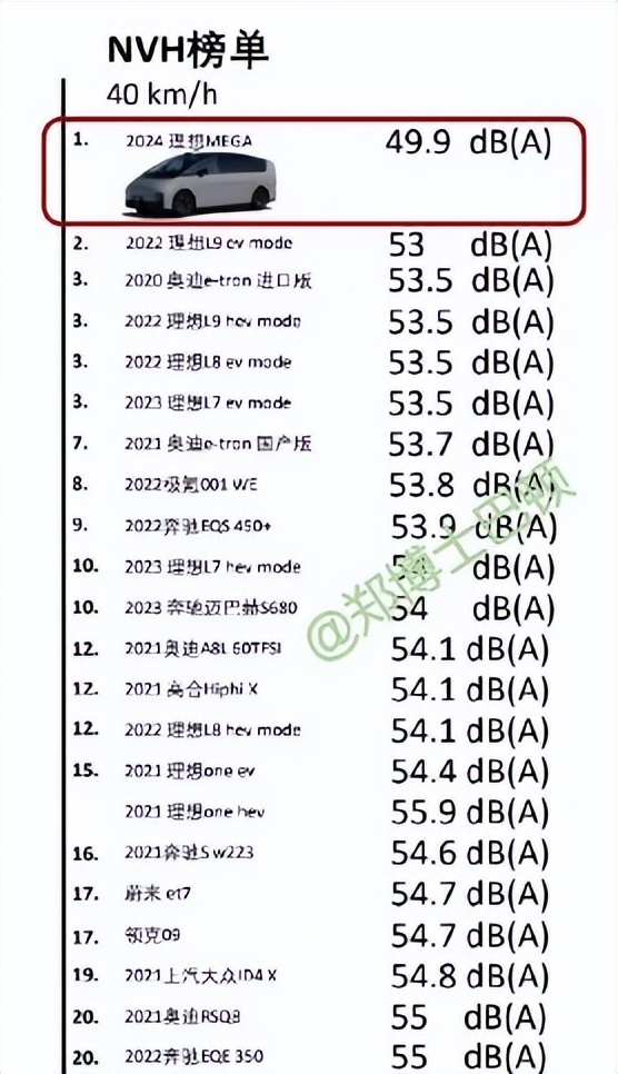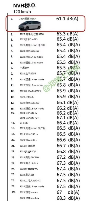 五.攻克NVH难题的决心和强大的体系保证能力 NVH从某种角度来说也可以说是玄学,他既有客观判断的数据,也有主观的感受。不同的人可能会识别不同的噪声和振动感受,有的噪声和感受只能特定的人群才能识别。所以在推行的过程中势必会受到重重阻挠。有些人会不理解是否需要这么严苛的标准,有的人会因为增加成本而反对,还有的人会受能力限制完全躺平没法解决这些问题。所以这既需要团队有持之以恒的决心,也需要有清晰的对标标准,还需要有带头大哥把这些标准进行精确的分解和传递,最后需要付出时间和成本的代价。我们欣喜的看到以李总为首的NVH团队,迅速的转变了这个观念,从最开始被“李想推着走”,迅速到“自己独立奔跑”。从Mega到L系列都取得了翘楚的成绩,搭建起了自己独有的NVH体系。这个成绩也给行业其他竞争对手留下了一个超纲的难题,这个难题可能不仅仅是依靠增加成本就能解决的。