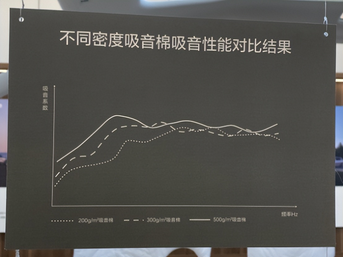 又比如吸音棉肯定是密度越大越好,那究竟要大到多少才能满足需求,通过这样的直观曲线图对比,就可以很清晰的看出哪种密度对应哪种频率的吸声最好。