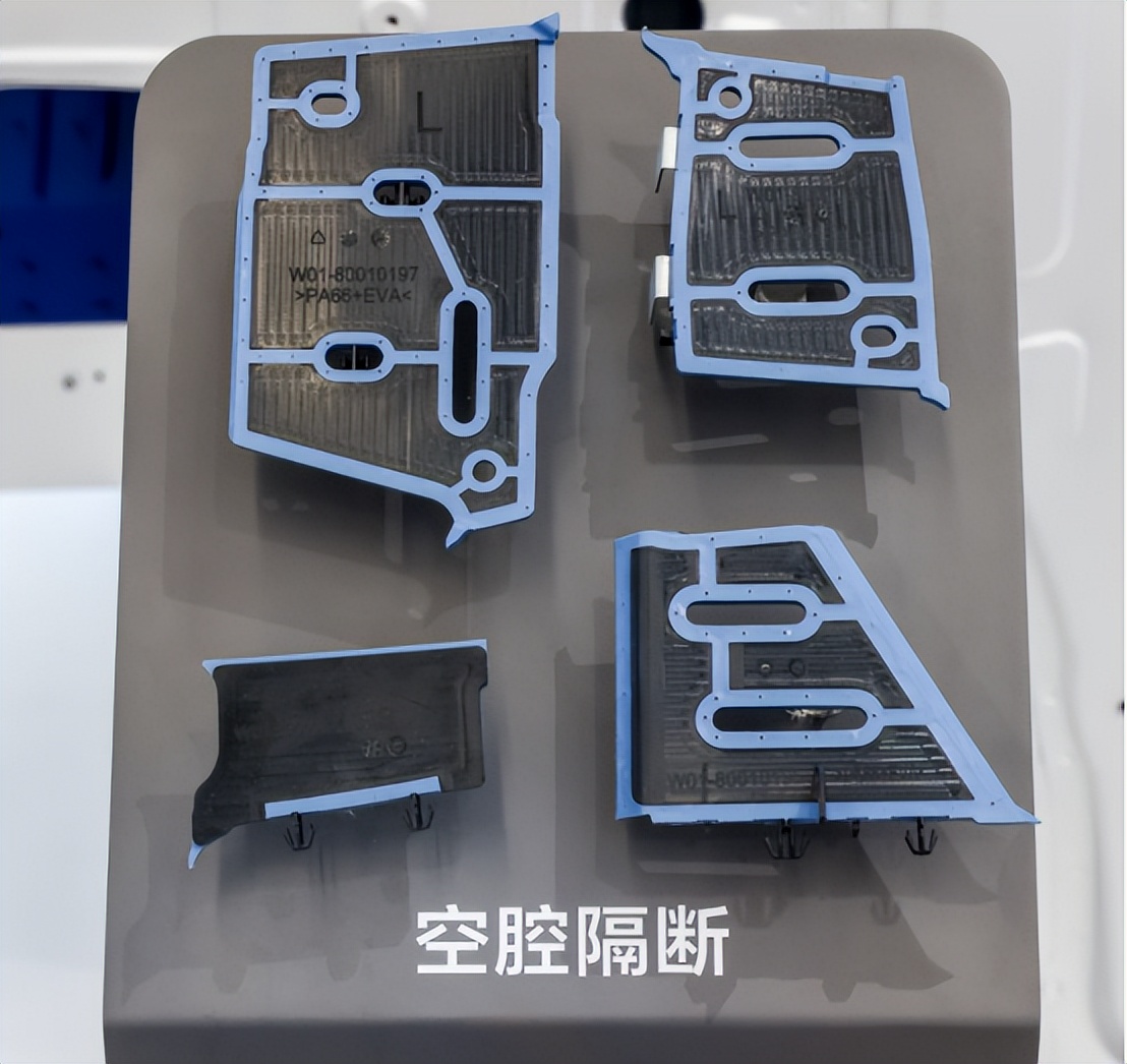二.选取了合适的材料,还需要设计合理的结构 大家都知道,汽车即使想加强车身结构,都不可能将每一处的钣金都设计成实心的,否则这车就太重了,所以绝大多数地方都是空心的,这些空腔在空气动力的作用下会带来噪音。Mega使用了多达48处的空腔隔断,远远大于行业平均水平的35个,来减少空腔在行驶时产生的噪声。