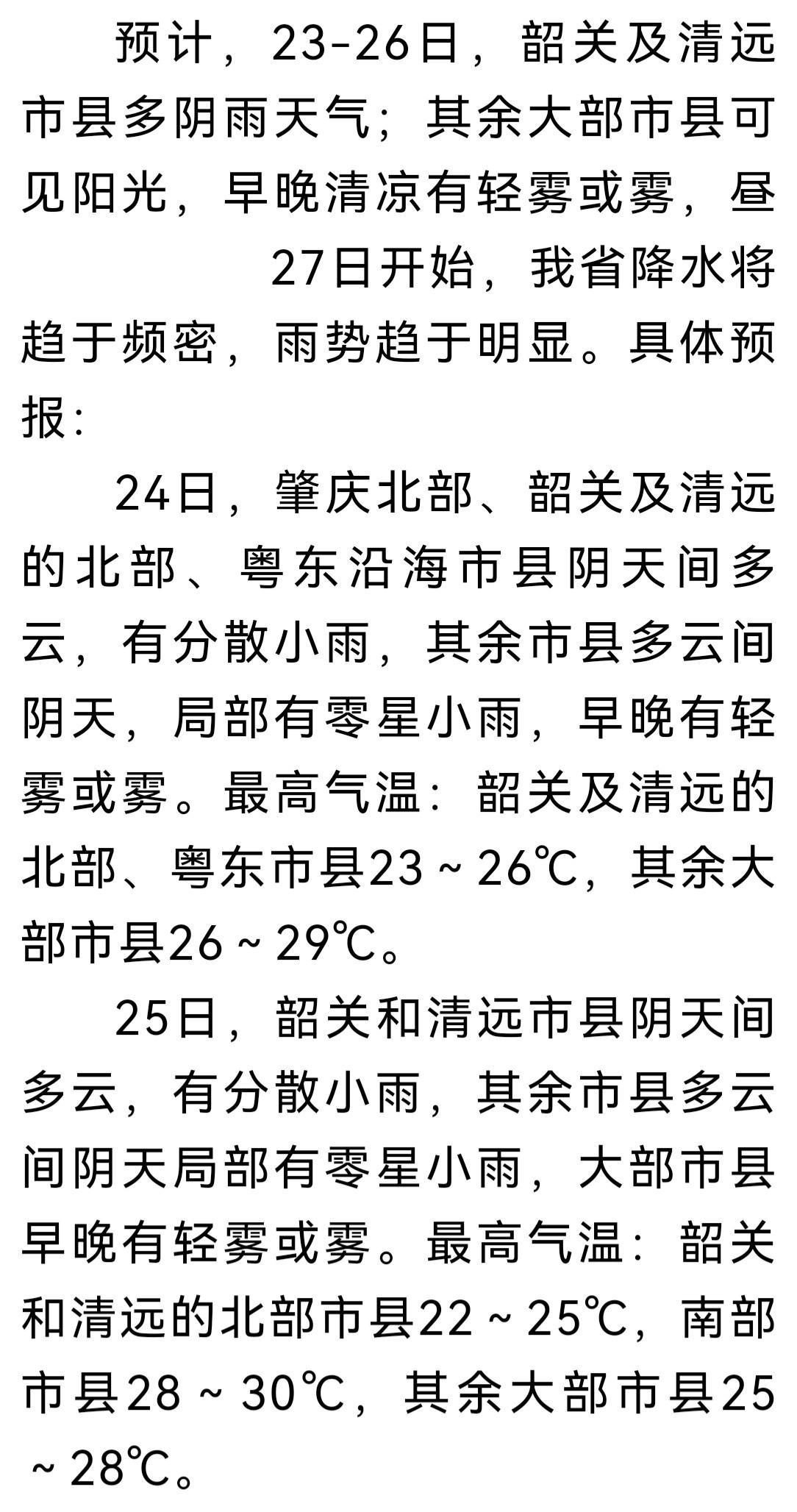 韶关及清远市县多阴雨天气