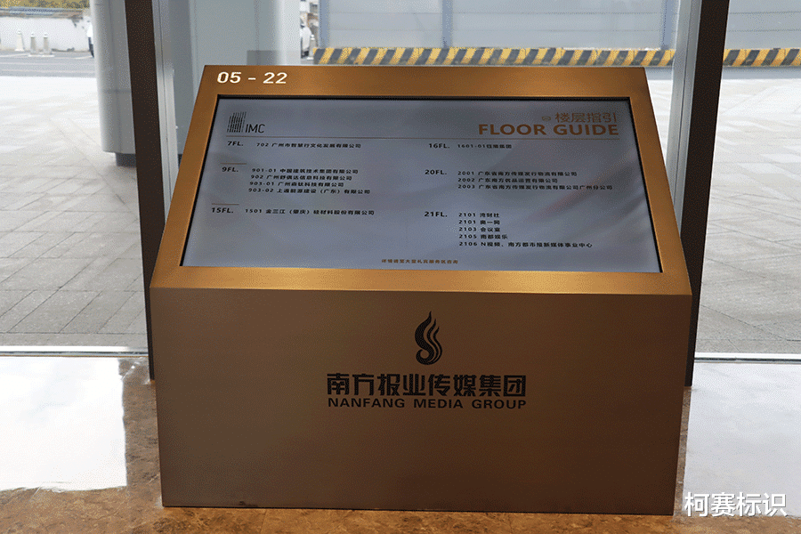 2,甲级写字楼智慧标识牌系统制作的分层导览体系设计需覆盖全路径,避免信息断层,大堂总索引屏,需标注各企业楼层分布、电梯分区、服务设施位置,电梯厅等候屏、车库导览、应急通道标识。