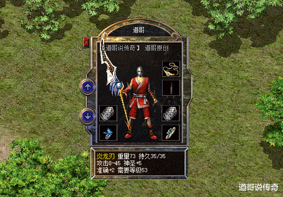 炎龙刃的属性不错,如上图所示:攻击8-45,神圣+5,准确+2。这加持真是全面啊,高攻属性自然不必多说,自带2点准确属性的神兵很少,炎龙刃就是其中之一。它还有5点稀有的神圣属性,对于这个属性的理解有很多,比如针对不死系怪物有效果,比如提供固定伤害值,总之对战士输出而言都是一种额外加持效果,在当时的展示神兵系列中,这种属性屈指可数。