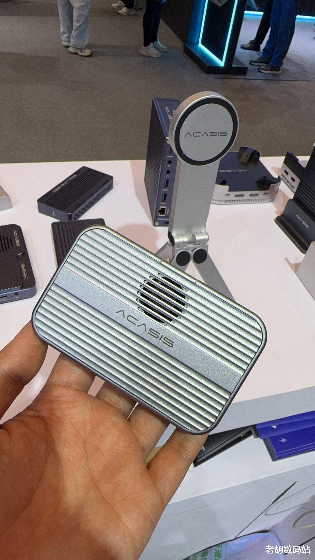 另外两款产品也吸引了不少目光。一款是旗舰级的TB501PRO雷电硬盘盒,主打便携与高速;另一款是专为iPhone 17 Pro设计的EC1401磁吸外置录制硬盘盒。后者可以直接吸在手机背面,用来外录视频素材。这两款产品也从一个侧面说明:阿卡西斯对苹果生态的理解,已经深入到了从笔记本、台式机到手机的每一个环节。