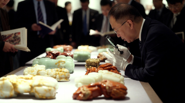 和田玉籽料收藏,门槛高,回报稳定。如果你有兴趣的话,可以先买一些中小件的带皮牌,几百万元就可以买到清时期的真品。渠道方面,北京保利、嘉德、香港苏富比预展比较靠谱,可以亲手多摸多比。多看博物馆里的国宝级籽料,比如故宫里的乾隆御用带皮扳指,一看就知道是极品。买玉要讲缘分,没有就不买,不能冲动买假货。真籽料握在手里,温润沉甸的感觉、自然的皮色,会让人一下感受到昆仑山千年灵气和清代匠人所赋予的诗意。