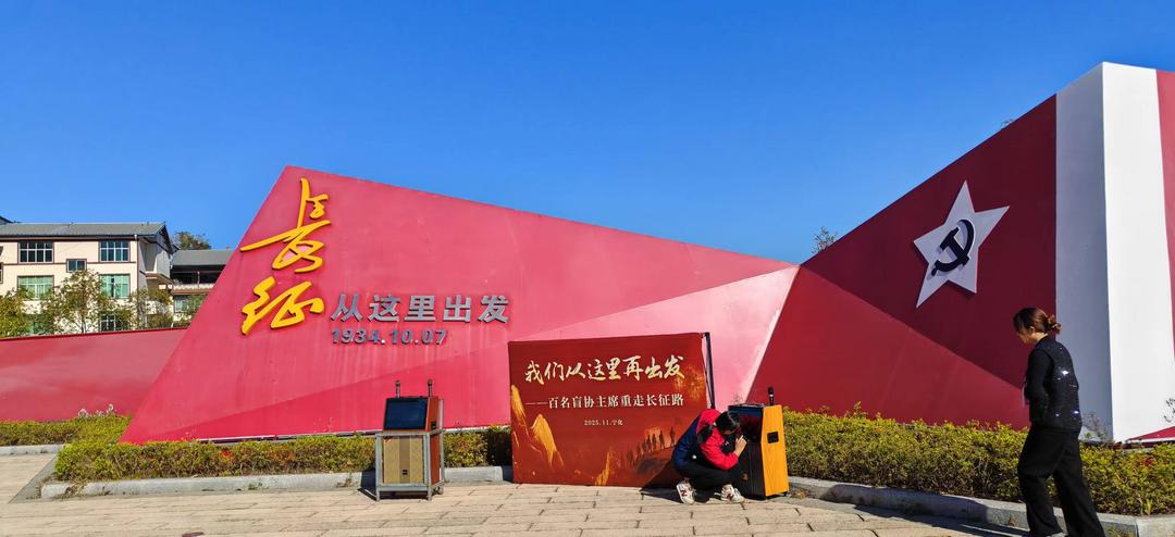 11月30日上午,“我们从这里再出发——2025闽台百名盲协主席重走长征路”启动仪式在福建省三明市宁化县凤凰山红色景区隆重举行。来自闽台两地的百名盲协主席,在志愿者的陪伴下,循着红军足迹穿梭于军号广场、红军街、朱德广场等红色旧址,以触摸聆听感悟长征精神,开启一场跨越海峡的红色文化之旅。