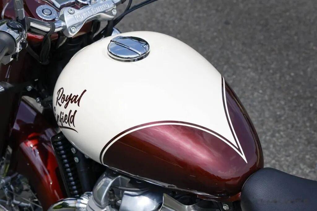 ▲钢制油箱容量14.8L。细条纹竟为手绘。