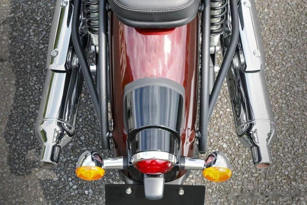 ▲近年罕见的长挡泥板前后皆为钢制。后避震为双枪式同样复古。