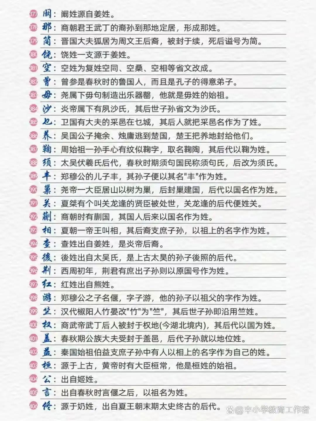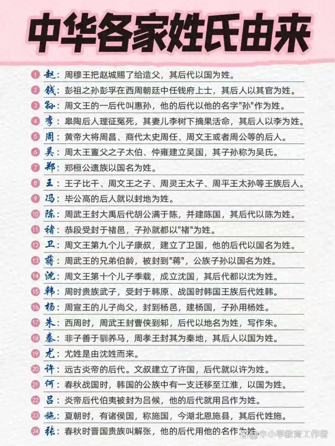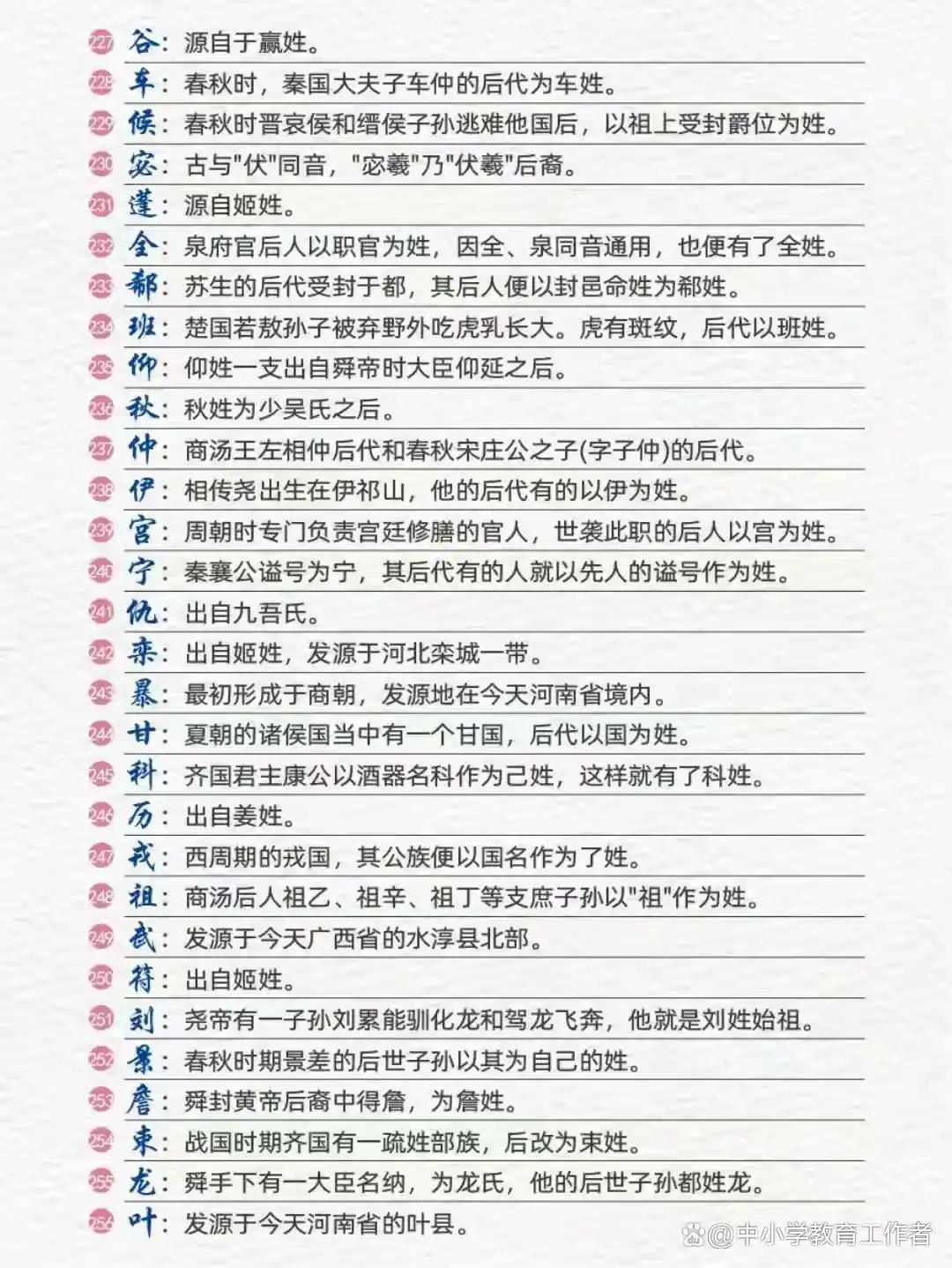 陈Chén:最早出自姚姓,胡公满的子孙们以国为姓。