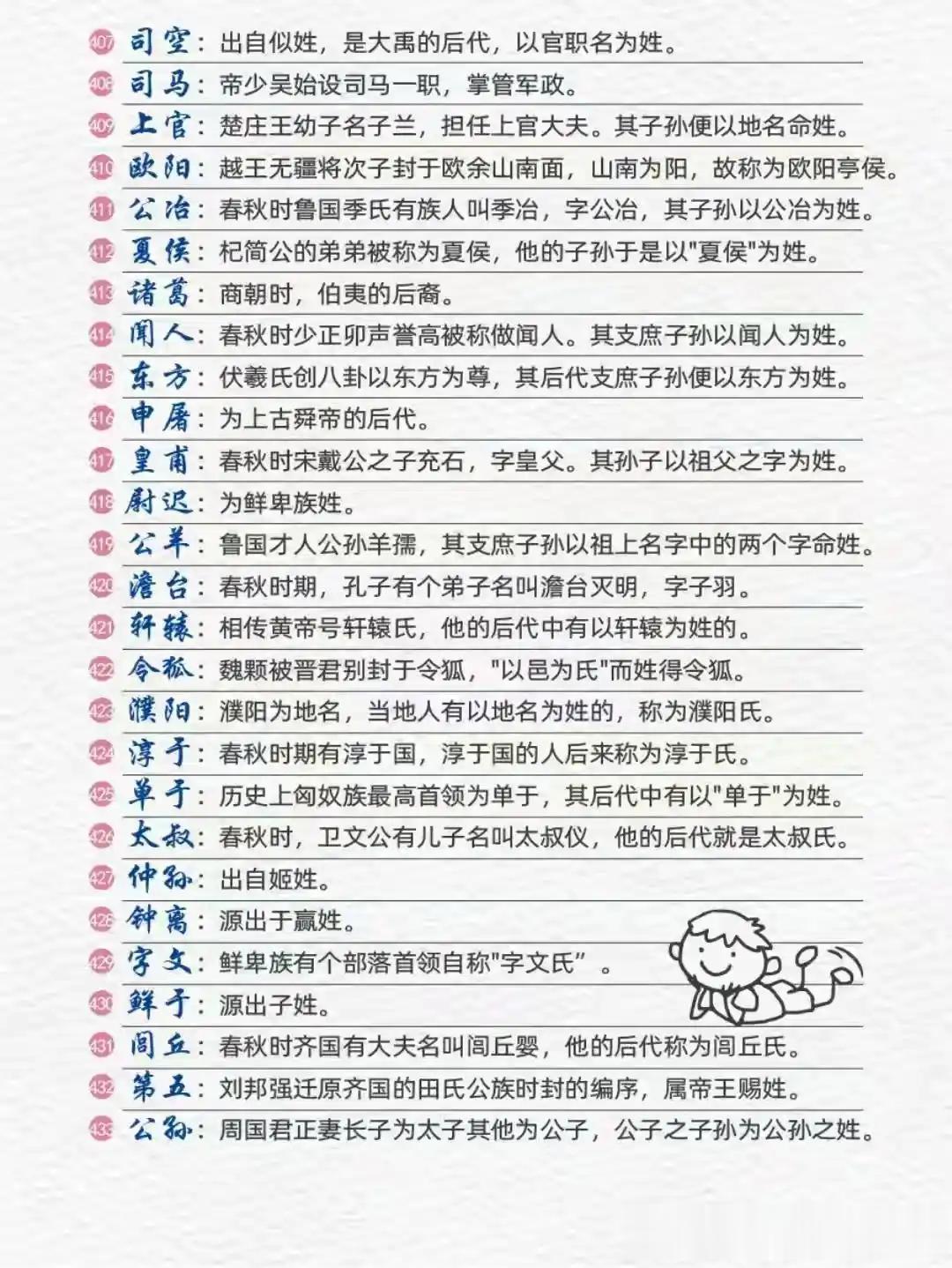 司空Sī kōng:出自姒姓,是大禹的后代,以官职名为姓。