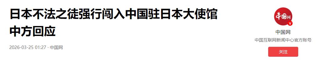 事件发生当天,中国驻日本大使馆立刻启动外交交涉程序,向日方提出严正抗议,要求尽快查清事件全貌,依法严惩涉案人员。