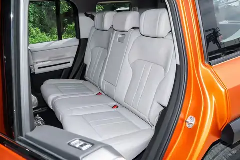 座椅的豪华程度更是令人赞叹,全车座椅均采用Nappa真皮包裹,触感细腻,做工精良,是普通真皮无法比拟的“高定”体验。前排座椅不仅支持电动调节,还配备了加热、通风、记忆和按摩功能,无论是长途驾驶还是乘坐,都能有效缓解疲劳。对于身高一米八的体验者而言,前排头部空间仍有一拳有余的余量。后排空间同样阔绰,头部和腿部空间都极为充裕,并且同样配备了加热、通风和按摩功能。后排座椅支持40:60比例放倒,放倒后可形成一个巨大且纯平的空间,无论是装载户外装备还是临时小憩,都游刃有余。三区独立空调系统和后排独立出风口的设计,确保了车内每一位乘客都能享受到更舒适的温度,避免了直吹的不适感。