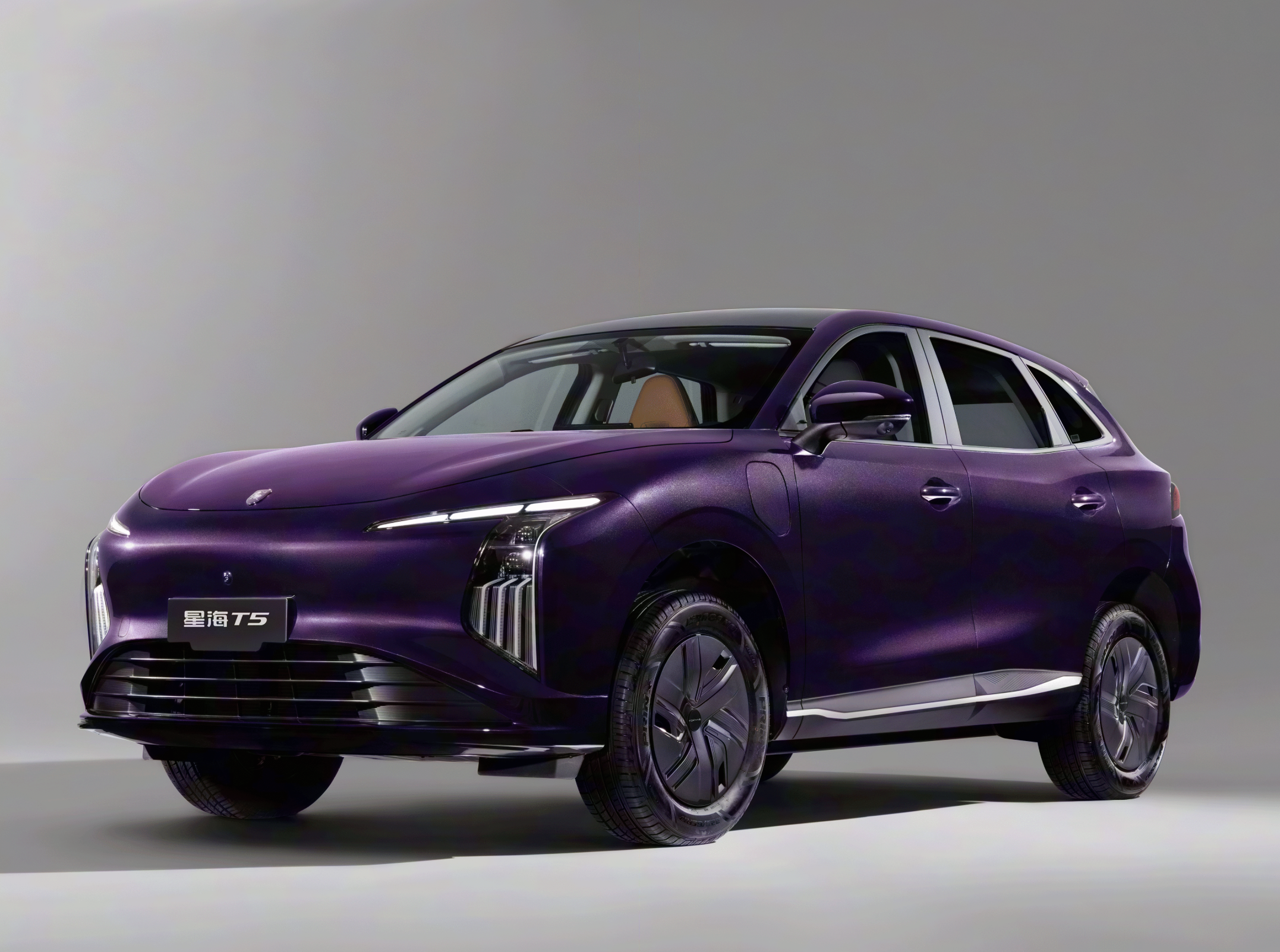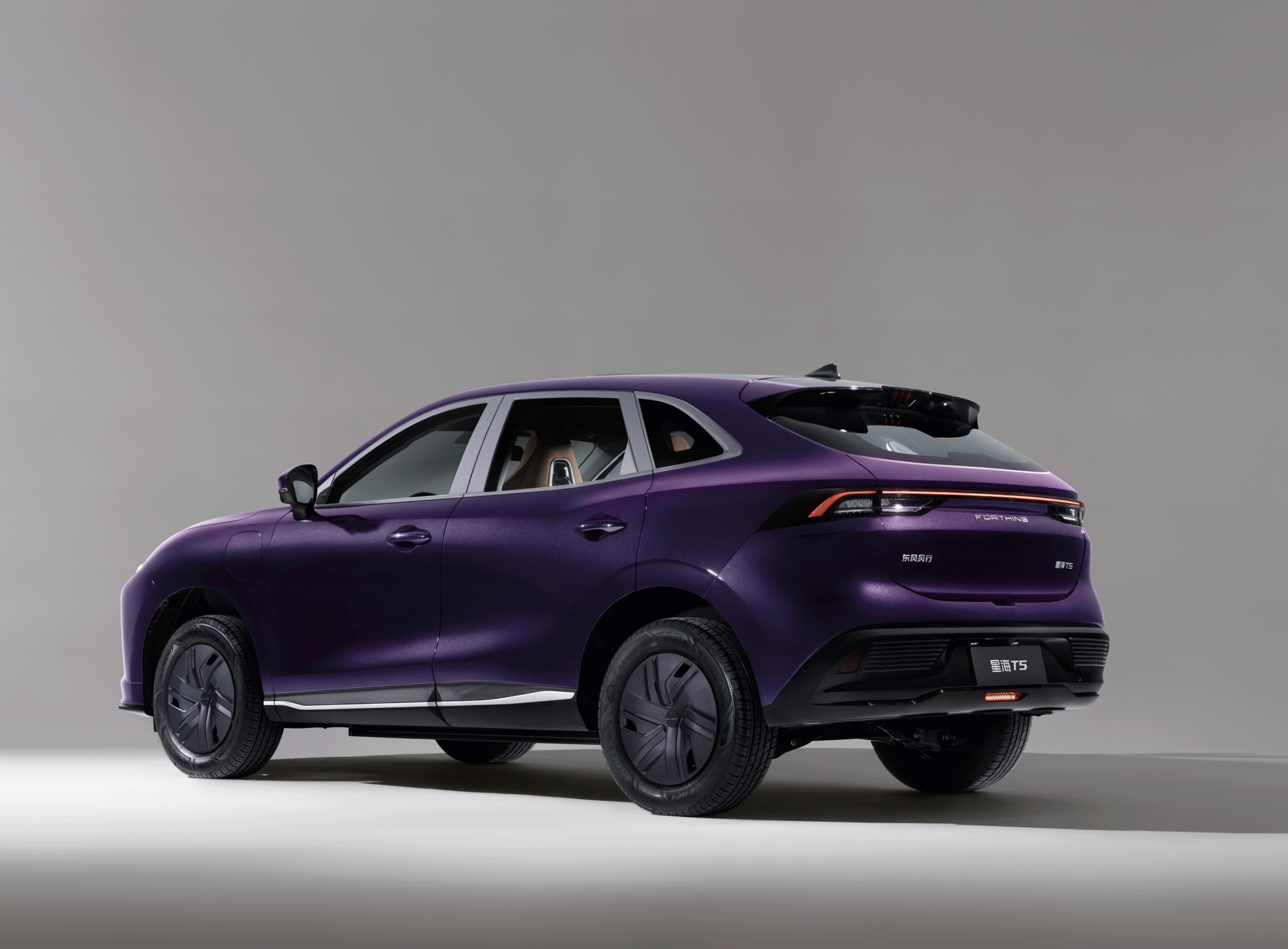 车身侧面,东风星海T5时下流行的轿跑SUV的时尚轮廓,较为倾斜的A柱、弧线形的车顶和略带溜背式的弧线一气呵成,车窗边缘、加宽的B柱和C柱采用了黑色饰板,再搭配着若隐若现的车身腰线和裙线,带来了跑车的既视感。渐进式的轮眉下方配备了17英寸的封闭式低风阻轮圈(高配可选18英寸)。车身提供了皓月灰、碧玉青、星耀黑、星辰白、龙胆紫、龙吟灰共6种车身颜色可选。尺寸方面,该车的长宽高分别为4600/1860/1680mm,轴距为2730mm。属于紧凑型SUV的范畴。车内提供了5座布局,出色的车身尺寸和轴距也带来了更好的驾乘体验。