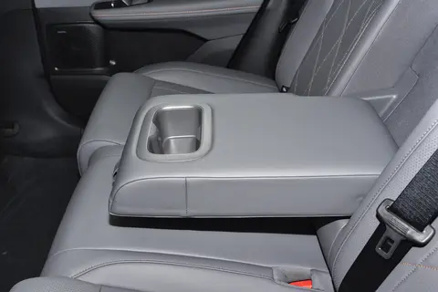 空间表现是深蓝S05长续航版的一大亮点。得益于2880mm的超长轴距,后排的腿部空间非常充裕。以我个人的体验,身高175cm的乘客在后排可以轻松地翘起二郎腿,头部空间也超过一拳半。即使后排乘坐三位成年人,横向空间也不会感到过于局促。储物空间方面,492L的后备厢采用了双层设计,便于分类存放物品;后排座椅支持纯平放倒,可以形成一个非常规整的大空间,无论是搬运大件行李,还是偶尔作为午休小憩或露营时的“双人床”,都非常实用。车内遍布的储物格,包括双层保温扶手箱(冬暖夏凉很贴心),也让手机、钱包、钥匙等随身物品各得其所。