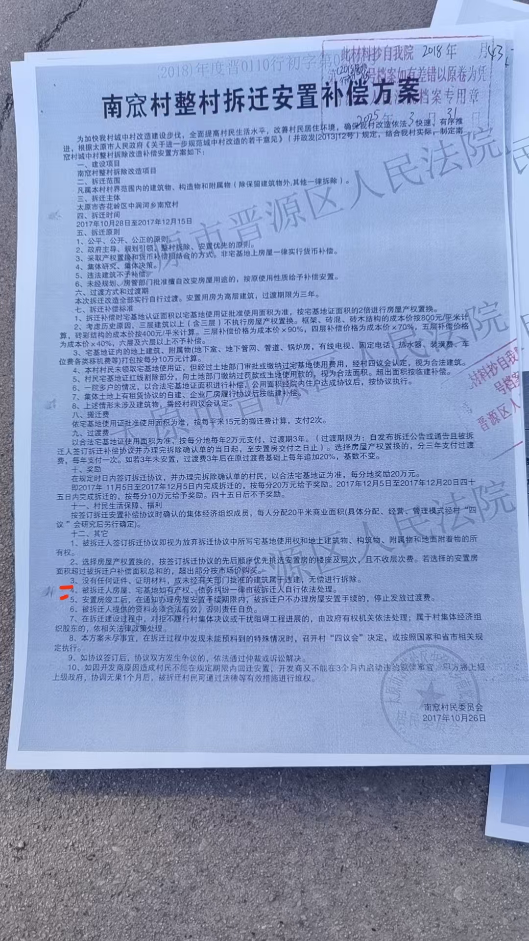 这场胜诉本应成为村民了解拆迁详情的转折点,却未料只是漫长协商的开始。吉还根表示,尽管法院已作出明确判决,但晋源区法院、乡政府、村委会的不作为,使村务公开要求并未完全落实,城中村改造的核心文件依旧未能完整公示,村名依法提出的拆迁补偿问题,更是迟迟无人对接处理。