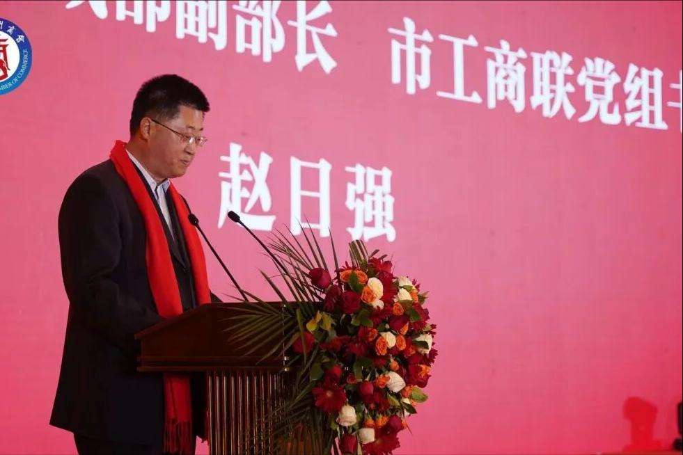 沧州市工商业联合会党组成员、副主席赵国政代表家乡工商联送上祝贺。他高度肯定大连沧州商会成立 13 年来的亮眼成绩,称赞商会既是在连沧商的温情港湾,更是沧州、大连两地经贸互通的坚实桥梁,为双地经济交流合作贡献重要力量。在连沧商传承务实坚韧的家乡品格,拼搏进取、建功滨城,为家乡添彩争光。当前沧州抢抓京津冀协同发展、雄安新区建设战略机遇,迈入高质量发展黄金窗口期,诚挚邀约广大在连沧商返乡投资、聚力兴业,共绘家乡发展新蓝图。