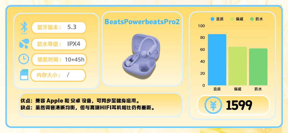Beats 是来自美国的耳机品牌,自被苹果收购后,整体定位逐渐向潮流与时尚方向转型,外观设计辨识度较高,也因此受到不少明星、博主和主播的青睐。这款耳机在造型和配色上更偏向潮流属性,佩戴时更像是一件穿搭配件,在日常通勤或休闲场景中存在感较强。