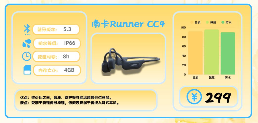 从配置和体验感来看,南卡RunnerCC4是南卡的用心之作,价格也相当实惠,是骨传导耳机当中的入门首选。