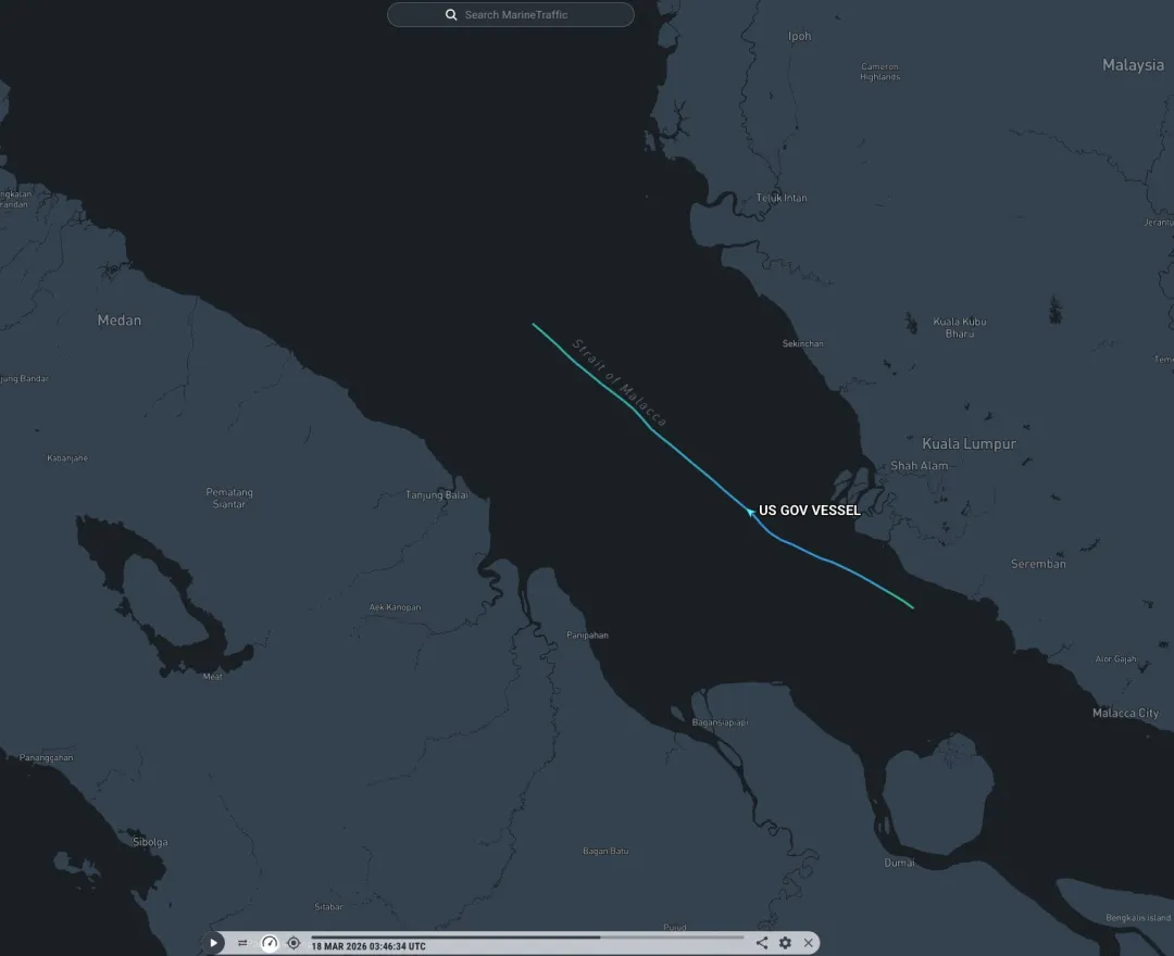 3月18日,“的黎波里”两栖戒备群通过马六甲海峡
