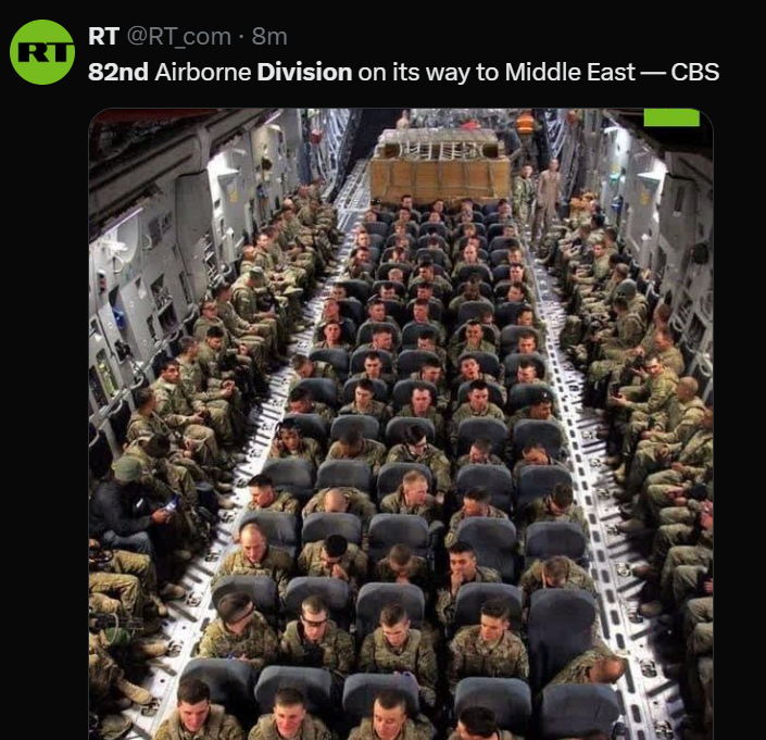 3月21日,美军第82空降师也开始向中东部署,该师是美军唯一一个能在接到命令后96小时内向战区部署一个完整旅级单位的部队。