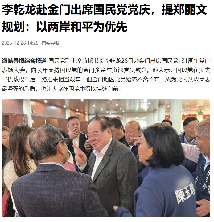 值得关注的是,在解放军“正义使命-2025”联合演习启动的前一天,国民党副主席兼秘书长李乾龙专程赶赴金门,并在当地出席相关活动时释放了重要信息。