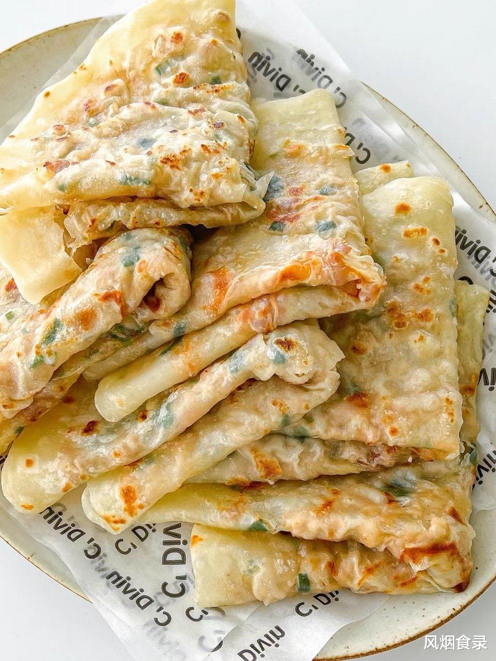 面团经盐醒发,拉扯时薄如蝉翼,能透光见葱花。