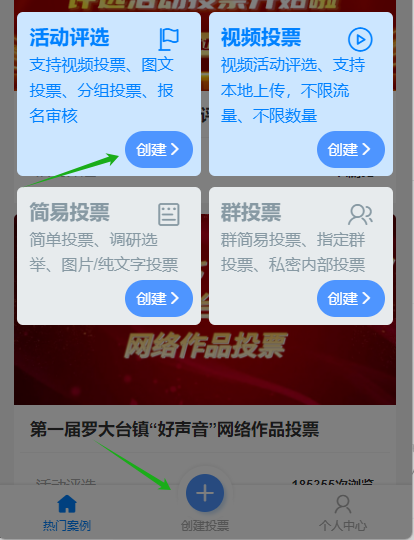 在小程序主页面点击【创建投票】→ 选择“活动评选”模板(适合年度人物、感动人物、十佳员工等场景),支持图文、视频投票混排。