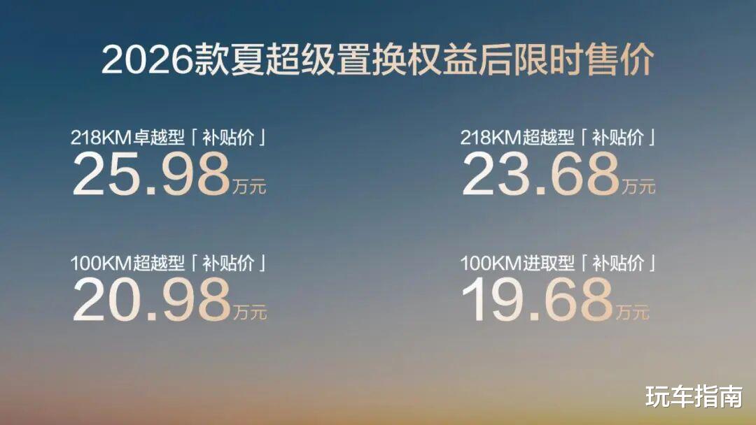 2026 款夏从颜值、舒享、智能、续航、安全等多维度全面升级,重新定义了家用豪华 MPV新标准。此次上市,2026款夏以高价值,为更多品质家庭带来更智能、更安全、更舒适的“头等舱级” 出行体验。它承载着家庭的幸福与浪漫,既是全家出行的可靠伙伴,也是移动的生活空间,更是家庭用车一步到位的终极答案。