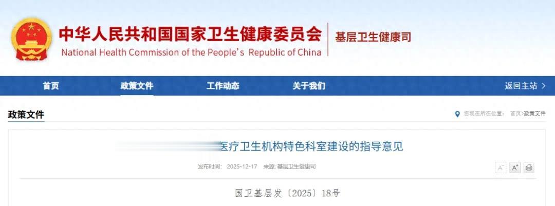 2025年3月,中共中央办公厅、国务院办公厅《关于进一步保障和改善民生着力解决群众急难愁盼的意见》,强调要重点强化基层医疗卫生机构短板专业建设,因地制宜培育办好基层特色专科,提高常见病多发病诊治水平。9月,国务院批复同意《医疗卫生强基工程实施方案》,提出持续开展“优质服务基层行”活动,加强乡镇卫生院、社区卫生服务中心特色科室建设。