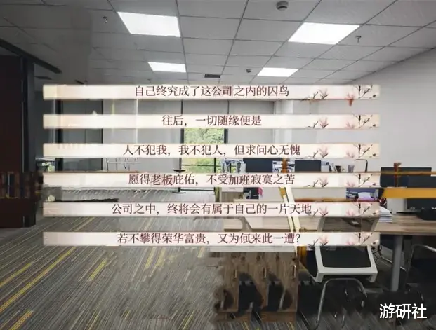 或许你最近看到过这样的内容,一张办公室的照片下方配一个淡粉色对话框,里面用类似“古风小生体”写着一些“班味”很重的文字,比如: