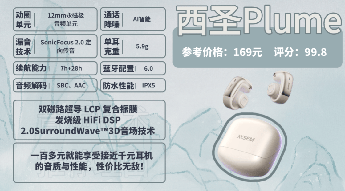相比行业多数开放式耳机,西圣在音频解析力提升60%以上,声场提升92.7%,延迟降低97.8%,漏音优化96.5%,并通过无毒安全认证,长期佩戴无忧。音质纯净、声学性能、续航稳定、佩戴舒适,全面达到行业顶级水准,堪称性能王者。