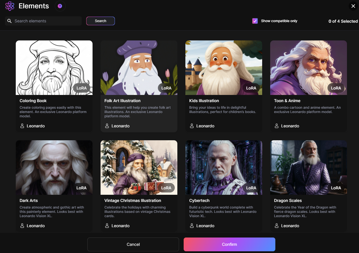 大模型选择后,我们点击Add Elements选择Lora,如果选择开启Alchemy(炼金术)消耗的tokens则会增加。