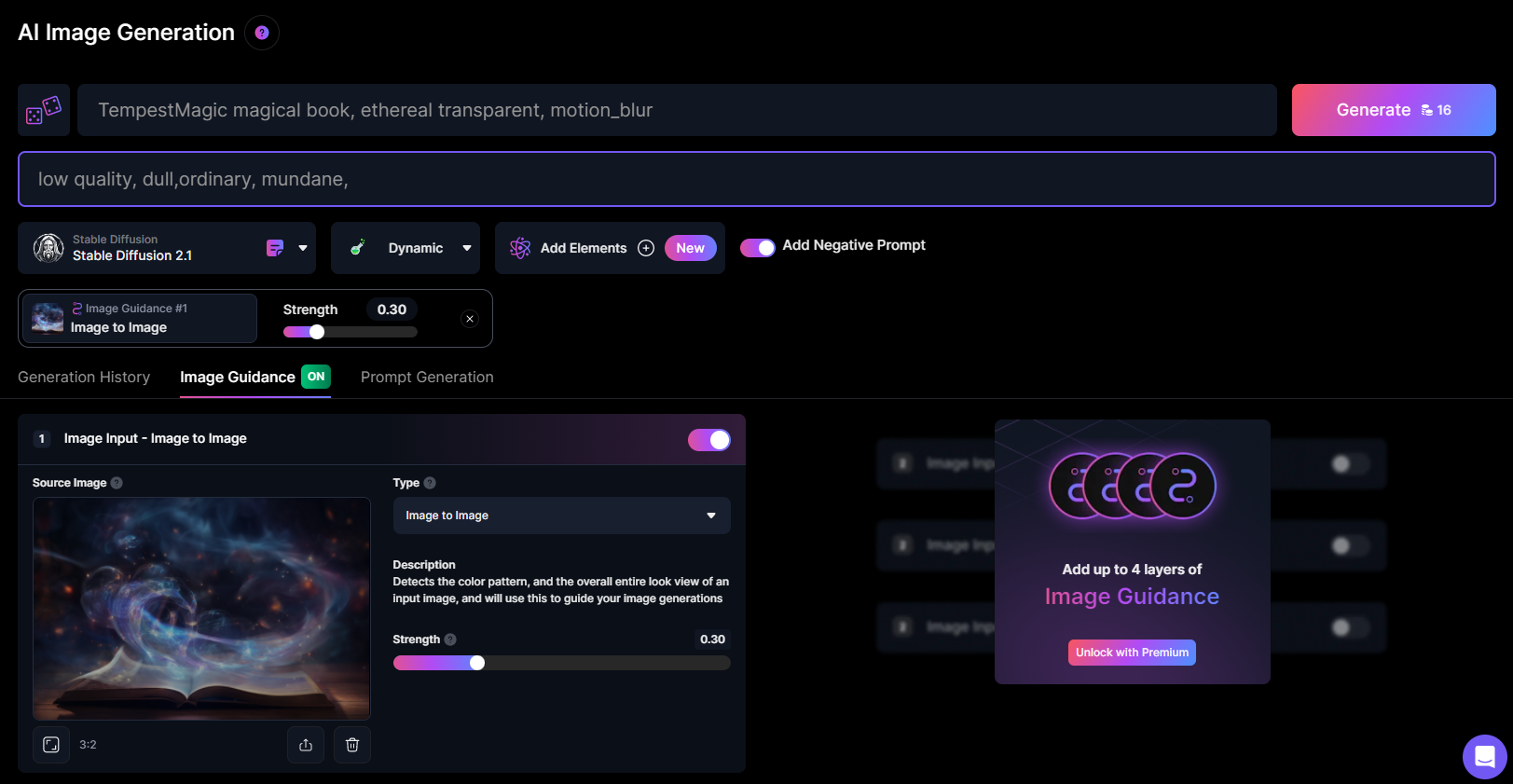 再来看看图生图,点击Image Guidance上传图片,填写关键词生成。