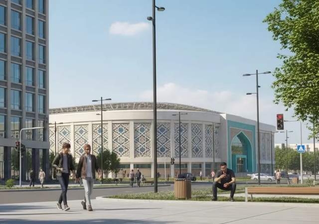 建筑设计理念强调现代建筑风格与民族价值观的深度融合,外墙将装饰传统乌兹别克民族图案,俯瞰形态呼应国徽元素,力求打造与恰特卡尔山脉自然环境协调的城市新地标。