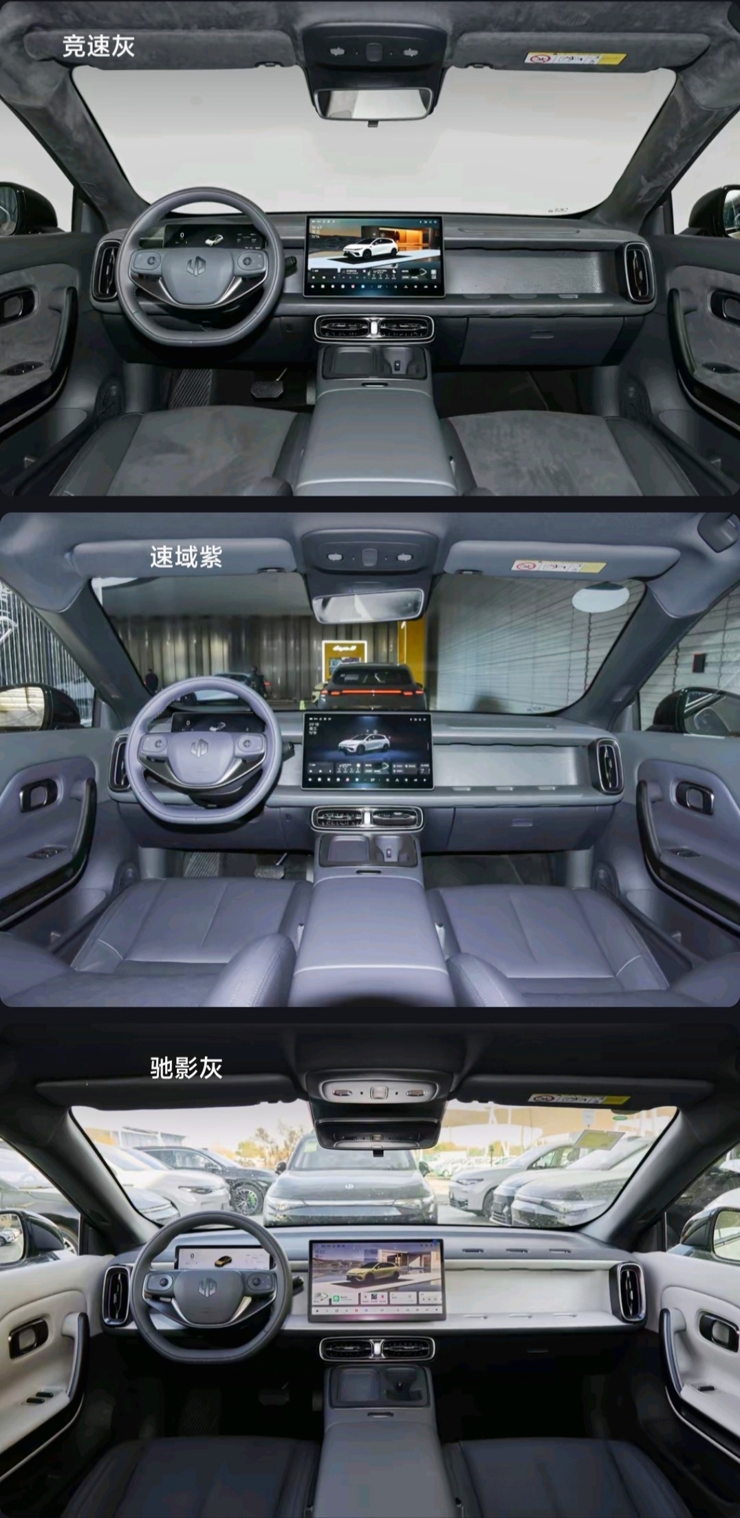内饰有速域紫、驰影灰、竞速灰三种风格。高配版竞速灰用Nappa真皮+仿麂皮超纤绒材质。