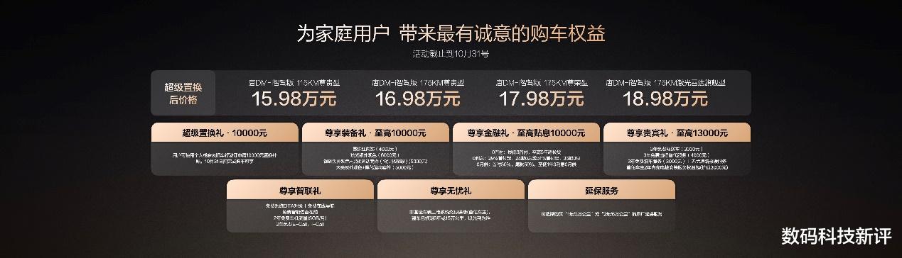 此次,唐DM-i智驾版 175KM长续航版共推出3款车型,售价17.98万~19.98万元(10月31日前完成购车可享10000元置换补贴)。同时,比亚迪还为用户准备了包含置换补贴在内的至高价值4.3万元盛唐礼遇。