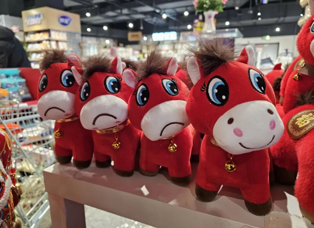 在北京王府井工美大厦,以“赤兔”“青鬃”为原型的“马墩墩”系列毛绒玩具前排起长队;在上海豫园商城,专为马年打造的“云马逐梦”灯笼一经上市,便迅速引发抢购热潮;在浙江义乌国际商贸城,印着“马上有钱”的小马公仔日均出货近两万件;陕西安康的工厂则将唐太宗昭陵六骏石刻转化为迷你挂件,上线不到两个月订单突破6万件。
