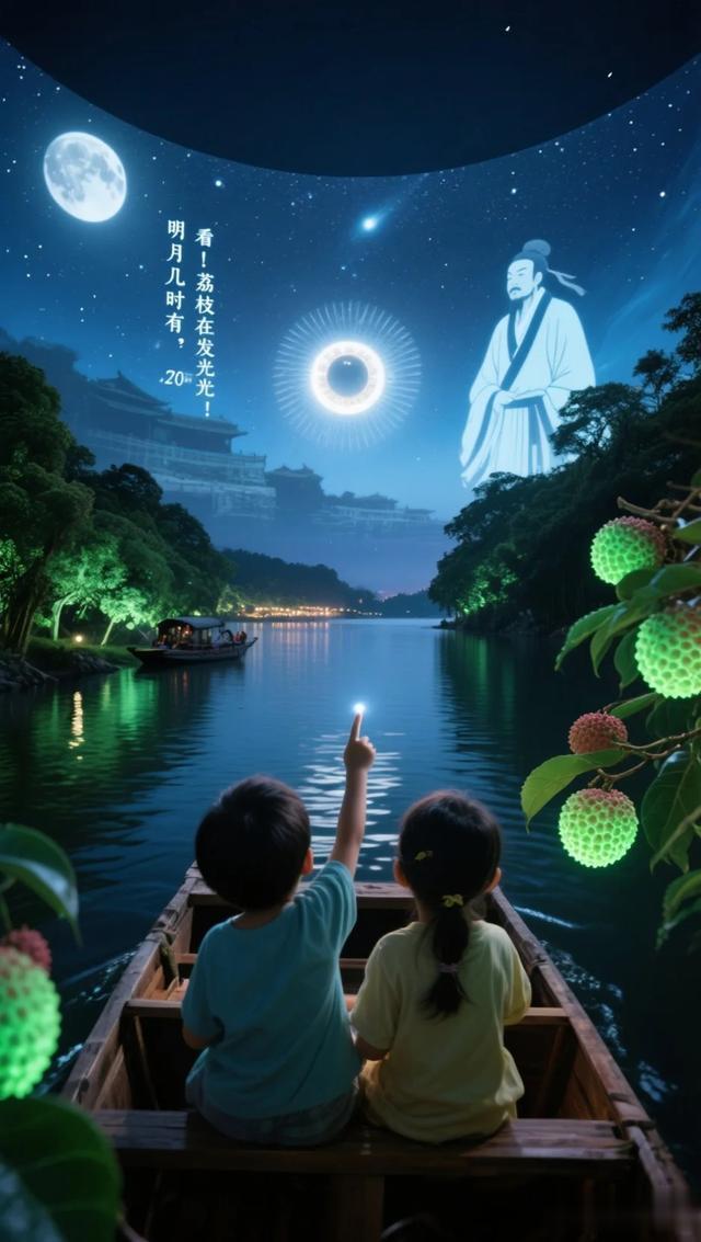 入夜,江心升起直径九米的 "昆仑之眼" 光影装置,270 度环幕演绎着渡口三千年沧桑。当苏轼的 "明月几时有" 全息影像浮现时,游船上的孩童指着星空喊:"看!荔枝在发光!" 岸边的荔枝林确实在夜风中摇曳生辉 —— 这是农科院特育的荧光品种,叶脉中流淌着生物荧光的秘密。
