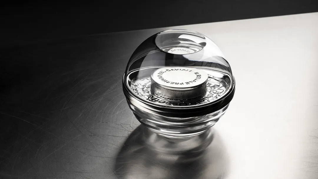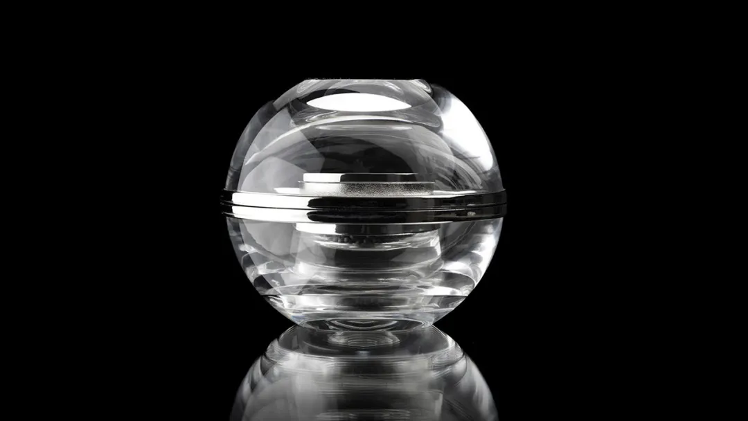于是,容器从内容物中“生长”出来:一个纯粹的球体。设计逻辑:产品即容器,容器即产品——二者在形态上实现了高度的统一。更为激进的是,包装上没有任何可见的品牌标识,没有多余的图形干扰。设计所保留的,只有材质、比例、光影折射和透明度这四个最本源的视觉要素。